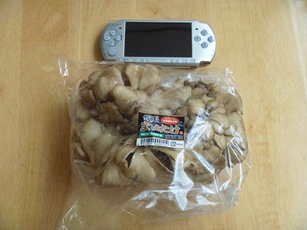 近くにあったpspと比較しても、こちら(東京)で売ってるマイタケの軽く三倍サイズですよ、これ。(はっ!シャア専用!?)