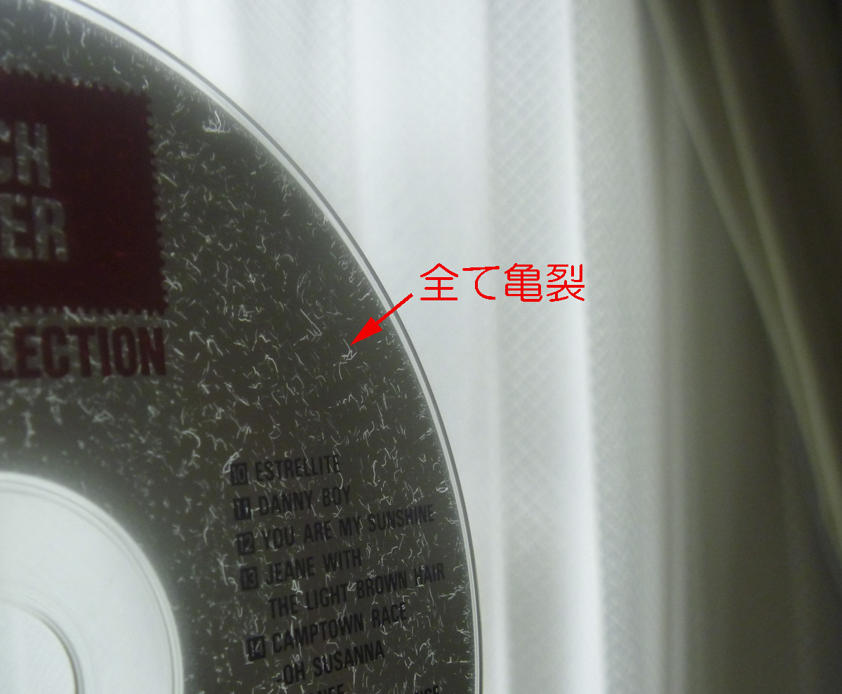 ケースを開けてみると、CD全体に糸くずのようなものが。
