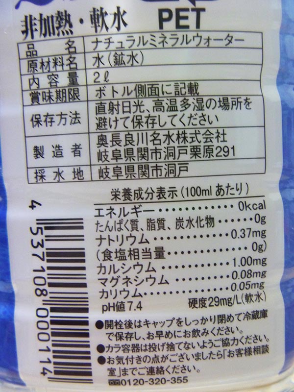 硬度が低くpHが高いので飲みやすい水なのですが、それらの数値以上にシリカやメタケイ酸の含有量のせいか、のどごしや口当たりは普通のミネラルウォーターとあまり変わり映えしません。
