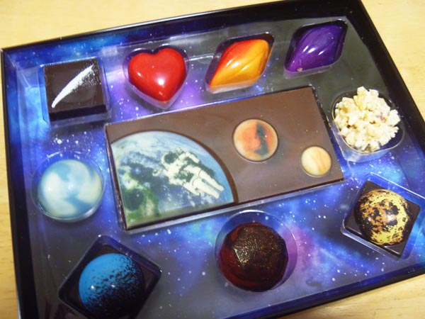 今回は地球と宇宙飛行士を中心に、色々な惑星や隕石などをモチーフにしたチョコレイト。
