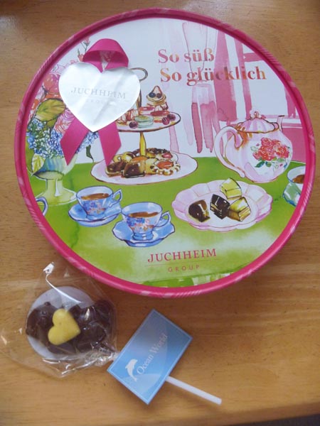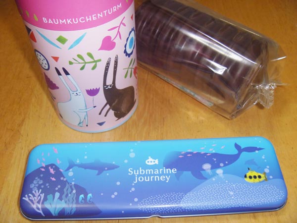 最近バームクーヘンブームな私に、バームクーヘンと缶ペンケースのチョコ。