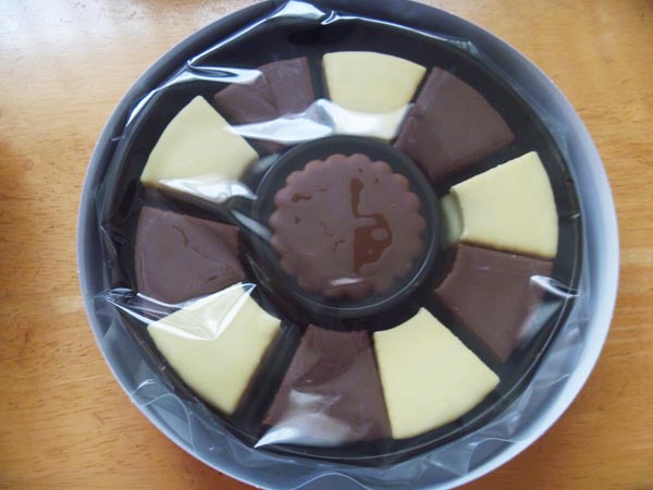 周りにカットしたチョコとホワイトチョコ味のバームクーヘンが並んでます。
