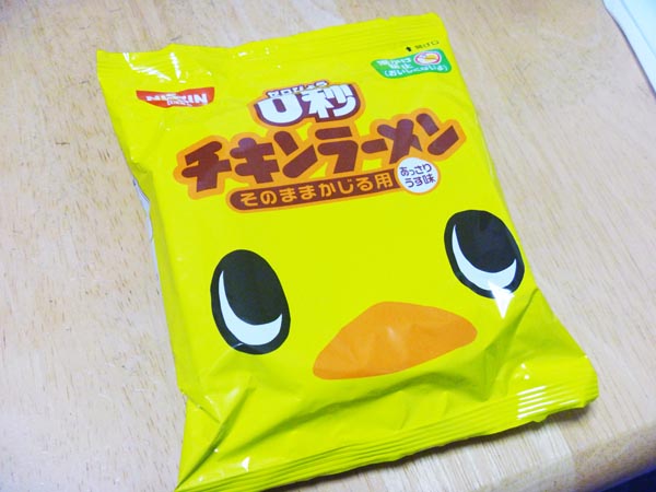インパクトのあるパッケージですが、味は普通にチキンラーメンですね(´・ω・`)