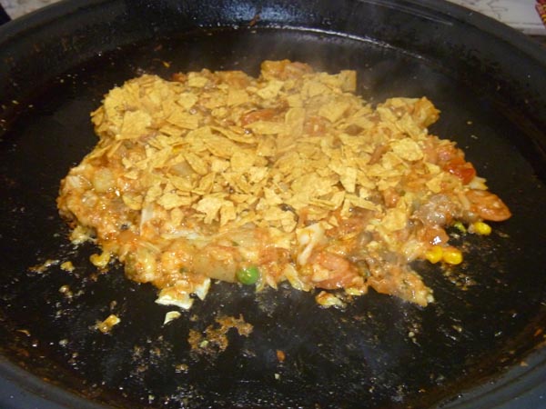 最後に、キリチーズとタコスチップスを細かく刻んだものを上からふりかけ~。