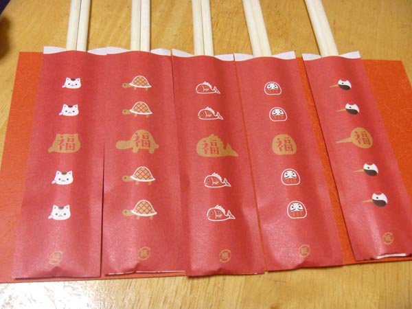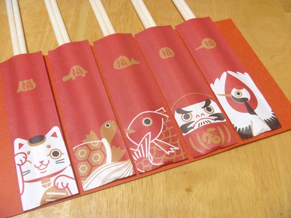 私が子供の頃にこのようなイラスト柄の祝い箸があったとしても、子供っぽいとか、正月らしくないとか、よくわからない大人の思考(プライド?)で却下されてたと思います。