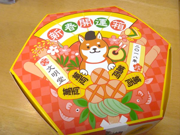 買い物に行ったら、あの文明堂から新春開運箱という縁起物が売っていたので購入。