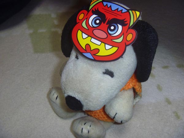 毎年恒例のでん六の鬼のお面です。