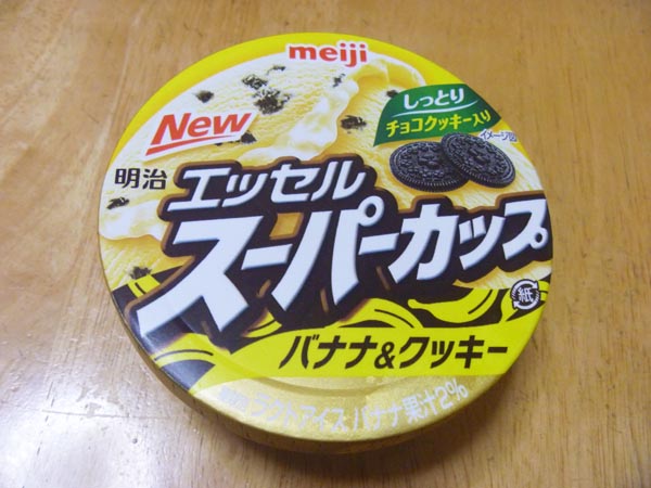思った以上にバナナ味がしっかりとしていて、そのうえで最近のスーパーカップ十八番のチョコクッキーがバナナの甘さに合います。