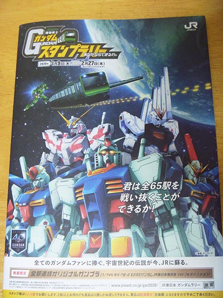 そういえば知らなかったのですが、JRの関東の沿線でガンダムスタンプラリーをやっていました。