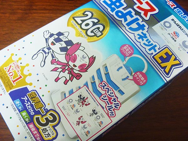 で、毎年虫よけのネットを買うのですが、今年は東京オリンピックの年だったのでこんなパッケージが。