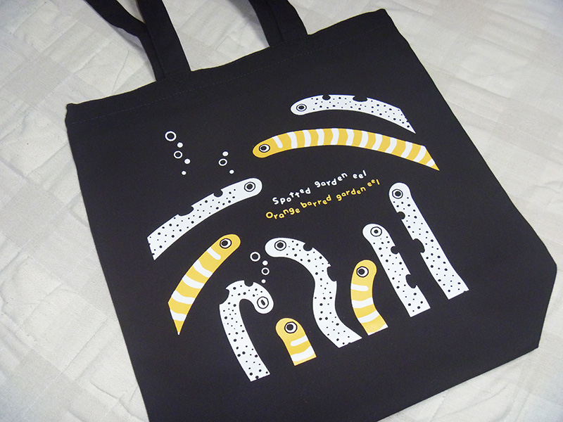 黒い素材にチンアナゴとニシキアナゴというセンス。
