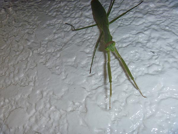 深夜に仕事から帰ってくると、家の壁に鮮やかな緑色。