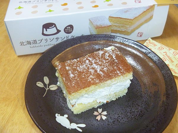 プリンをふわっふわのスポンジとクリームでサンドしたケーキ。