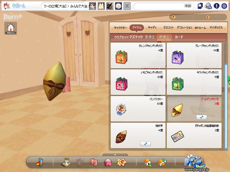 このストーブは、一度もらうといつまでも焼き芋を製造するのでしょうか。 てっきり、イベント期間だけと思ってました。 まだ、出てます。 しっかし、郵便受けが室内にあるのは、さすがに違和感がありますな。 黄金の焼き芋、使うときは来るのだろうか ゲーム、やってないなぁ。 まぁ、言うほどゲームやりたい感じじゃないんだけどね。 PC自体を使う暇が無いというのが、正解だろう。