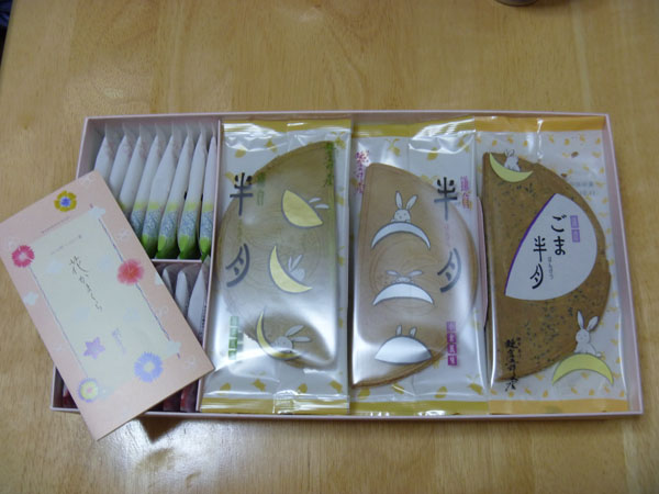 鎌倉五郎という和菓子屋さんの、鎌倉半月と言うお菓子の詰め合わせだそうです。