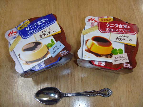 注目度が高まっているタニタの社員食堂。 そこのデザートプリンが売ってました。 なんと、一個100kカロリー。 なめらかカスタードと、まろやか豆乳プリン。 カスタードのほうは、ソースがなんと黒みりん入り! ちなみにみりんっぽさは無かったです。ただ、ソースと言うよりは煮こごり。固まったソース。 でも、それなりに美味しかったですよ~♪ 甘さはかなり控えめですが。 豆乳の方は、プリン生地自体が結構豆乳風味。 豆乳が苦手な人は、無理っぽいです。 黒ゴマソースは、美味しかったですよ。 甘党の人は買わなくてもいいですねw