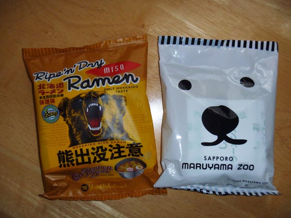 左は味噌ラーメン、右は円山動物園の塩ラーメン。