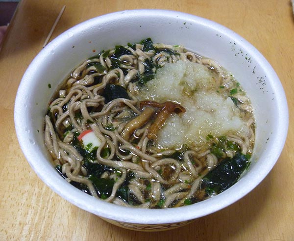 味はいつもと同じマルちゃんの蕎麦なんですが、なめこと大根おろしがしっかりアクセントになってます。