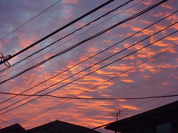 雲は真っ赤に染まり、空は普通に青い。