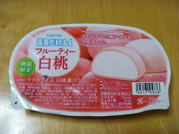 個人的には普通の雪見だいふくが一番好きなんですが、この白桃はかなり美味しかったよ。
