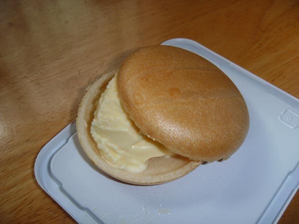 なんと、カスタードと抹茶(は写ってませんが)の2種類のアイスを、自分ですくってお好みでサンドして食べるらしいんですわ。