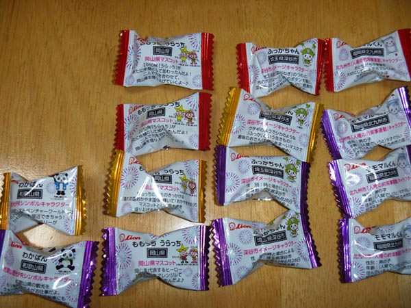 右下に、全30種らしいことが書いてあったので、他にどんなゆるキャラが個包装にプリントされているのかワクワクしながら開けてみると・・・。