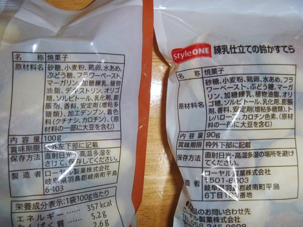 原材料を見ればほとんど変わらないのは一目瞭然だし、なんと言っても製造元は両方ともローヤル製菓ですからねw