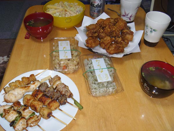 久々の休みだったので、ちょっと豪華に行こうと焼き鳥と唐揚げなどを夕食用に購入。
