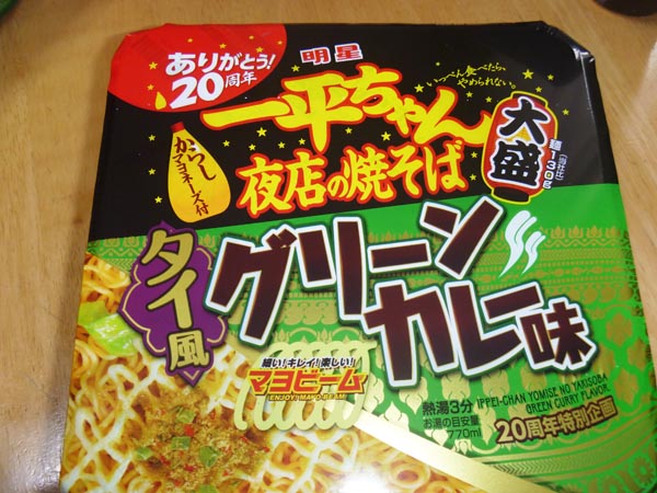 で、その20周年記念がタイ風 グリーンカレー味という、なんでこれなのかはよくわかりませんが、食べてみましたよ。