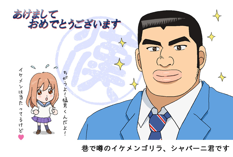 今年は申年なので、一部の女性たちに大人気のゴリラ、シャバーニくんに登場して頂きました。