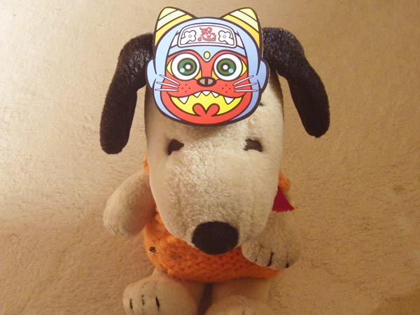 去年も被ってもらったけど(節分2016)、今年もぬいさんに鬼の面を被って(頭に乗せて)いただきましょう。